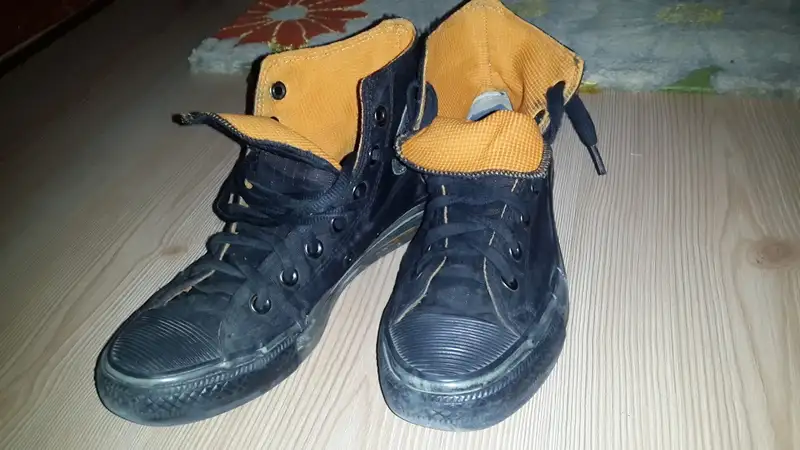 Orjinal converse, giydim kumaşında hiçbir yırtık yok ancak her conversede oldugu gibi kenar lastikleri catladı 20 tl 37 numara