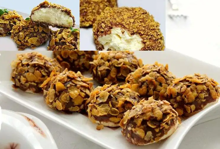 Öncelikle yumurtalarımızı kasede iyice çırpalım ve şekerimizi ,yağı,yumurtalarımızı, vanilya ve kabartma tozumuzu ilave ederek iyice harmanlayarak yoğuralım, kulak memesi yumuşaklığında hamur elde edelim. Çok az yağla yağlanmış tepsimize hamurlarımızı ceviz büyüklüğünde dizelim ve 170 derecelik fırında pişirelim.Diğer taraftan nutellamızı cam bir kapta benmari usulü eritelim.Pişen kurabiyelerimizi önce erimiş nutellaya daha sonra mısır gevreğine batıralım ve buzdolabında yarım saat kadar dinlendirelim. Kurabiyelerimiz servise hazır