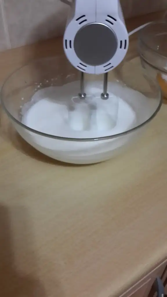 Yumurta beyazları ile şekeri iyice çırparak kar haline getiriyoruz öncelikle