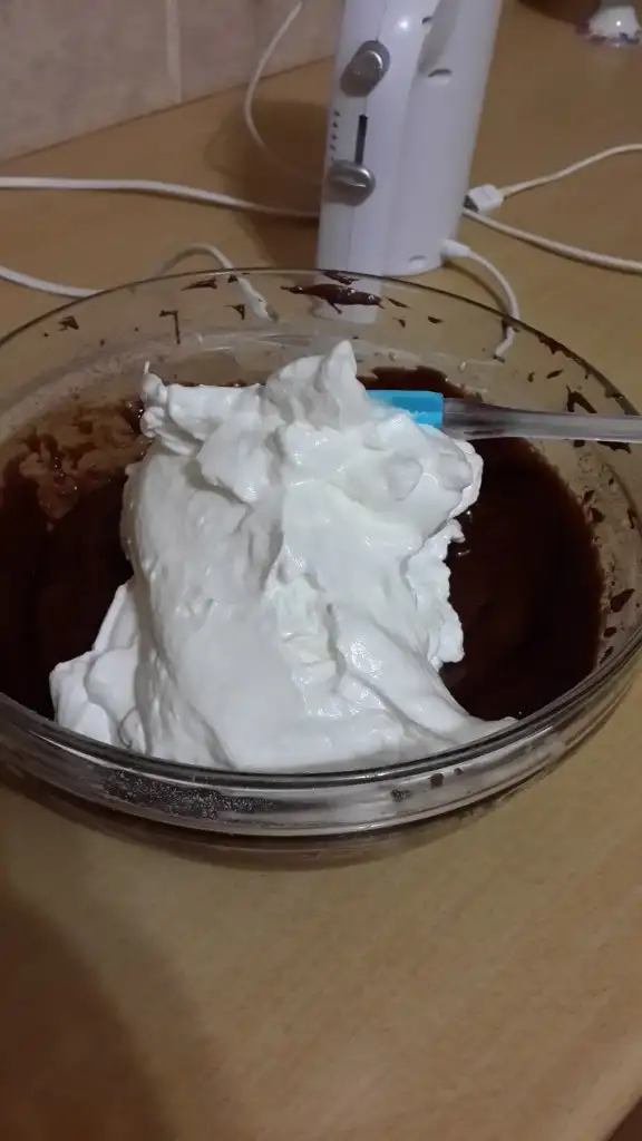 Sıra geldi kar haline getirdiğimiz yumurta aklarını bir spatula yardımı ile kıvamlı hamurumuza yedirmeğe .