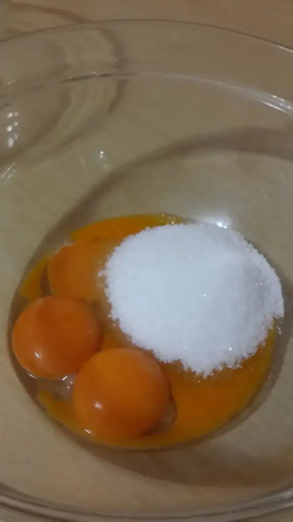 Yumurtaların aklarını ayrı sarılarını ayrı kaplara alarak 1 bardak şekeri yarı yarıya olmak kaydı ile her iki kaba eşit olarak bölüştürüyoruz
