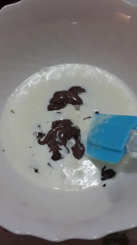 Sonrasında ise ocaktan aldığımız kremamızı isteğe bağlı 1 yemek kaşığı Nutella ile kıydığımız çikolatamıza ekleyerek kıvam alana dek karıştırıyoruz.