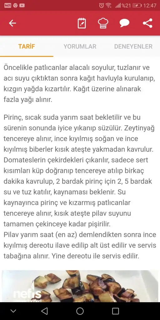 Patlıcanı çok severim kesin deneyeceğim. Bulgur sanmıştım. Bu da güzel olurHayır pirinç pilavı. Bu tariften yapıyorum. Sadece domates ve dere otu katmıyorum :)Eki Görüntüle 2753589