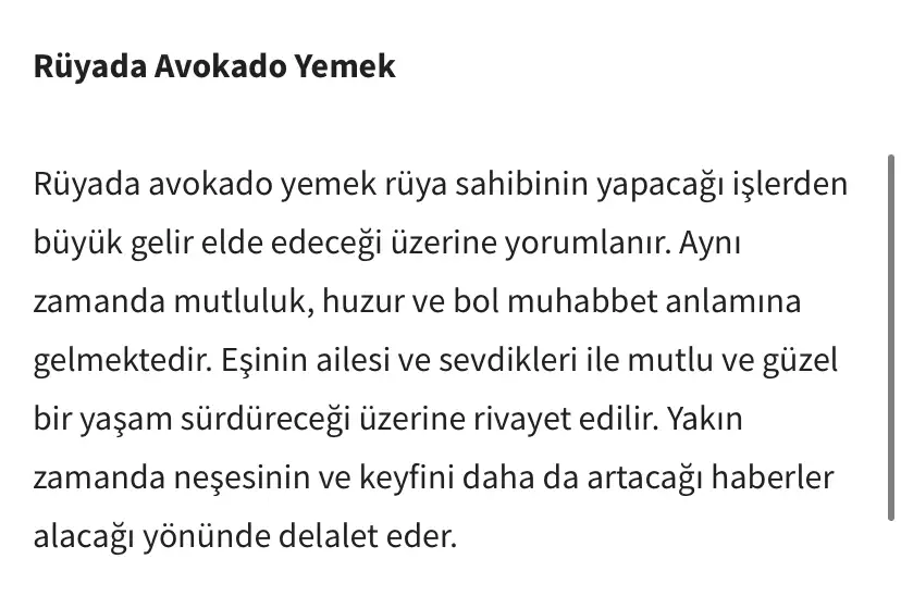 Hadi inşallahAvokado demişken gece rüyamda sizi gordimkatır kutur avokado yiyorum ama tadı nasıl guzel size diyorum ki hani kötüydü laa çok guzel bu diyorum siz de diyorsunuz ki sen iyisine denk gelmissindir