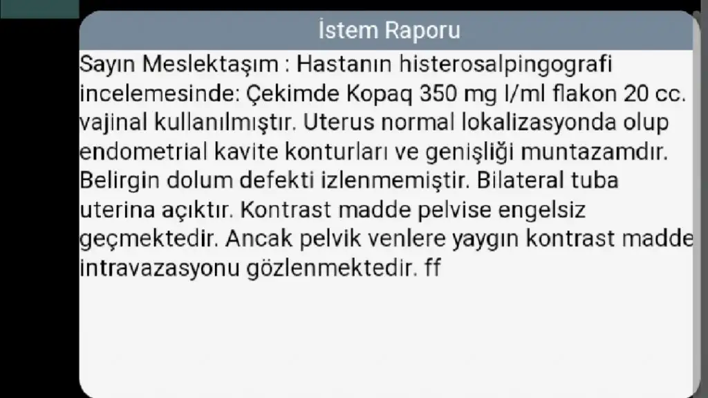 Canim yardımcı olmak isterdim ama hiç anlamadığım bir konuKızlar ekte benim hsg sonuç yazım, var. Bugün durup dururken aklıma son cümle takıldı. Ancak diye başlayan. Anlayan biri var mı nedir. Nette kanser hücrelerinin kana karışması gibi bişeyler yazıyor tam anlamadım. Doktor da bununla ilhili bişey demedi sadece sıkıntı yok tüplerin açık demişti.maviss_34 Papatyamveben-Mavi MaviSasa234 Dilos6342 ve diğer kızlar