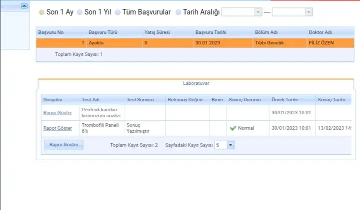 Canım peki normal yaziyormuydu sende de. Raporu aç dedikten sonra pdf indiriyorum ama hiç bir değer yazmıyor sadece normal yazıyor bu yüzden kafam karıştıRaporu göster açtıgın zaman sonuç yazması gerekiyor. Ben de yaptırmıştım 1 ay kadar sürmüştü rapor çıkması. 4G-4G diye sonuçlanmıştı ve doktorum pıhtılaima olduğunu söylemişti. O yüzden transferden sonra kan sulandırıcı iğne kullanıyorum şu an.