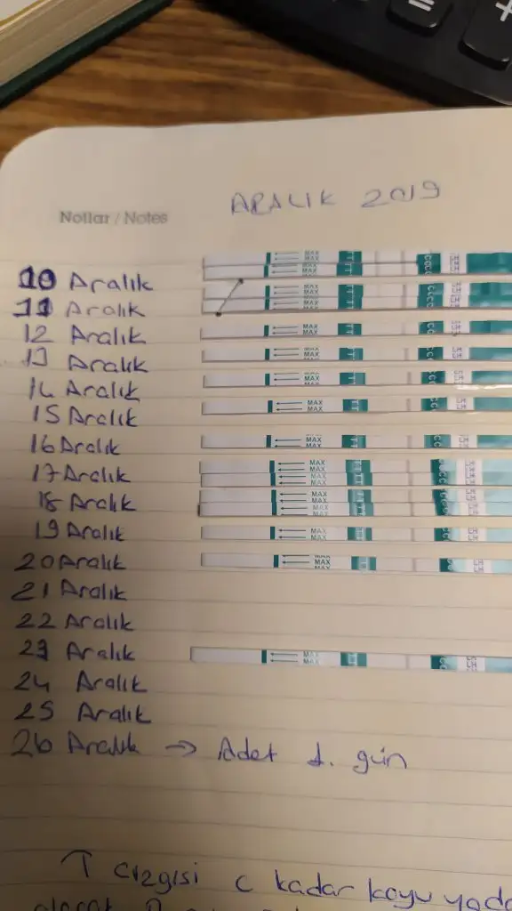merhaba arkadaşlar ben adetimin 10 gününden 20 gününe kadar ovulasyon testi yaptım 20 günde dahil resimdeki gibi cıktı 21 günden itibaren tek çizgiyie düştü ben ikinci çizgiyi çok koyu görmedim kendimde ama10 günden beri eşimle deniyoruz en son pazartesi günü gecesi baktığımda sanki yumurtam çatlamış gibi sıvı geldi benden eşimle denedim o an yine biraz kasıklarımda ara ara giren agrı var birde şişlik var neden sizce ve ve ben iki çizgi koyulugu yakalayamdm ama hamile olabilme ihtimail varmı sizc yumurtam çatlamış olabilirmi 15/01/2020 bu ayki adet tarihi gözüküyor