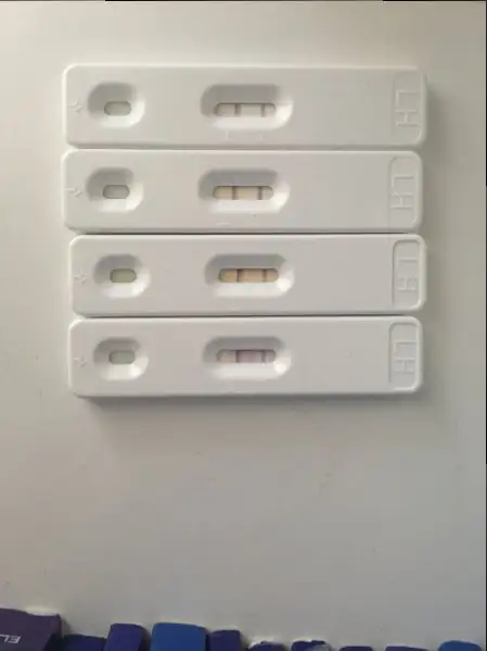 Kanda hcg 68 çıktıktan sonraki günler sırasıyla şöyle çıktı ovulasyon testlerim (üstteki en eski sonrakiler birer gün sonra)