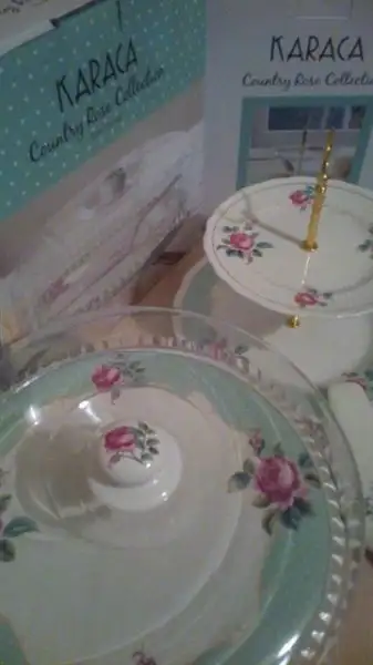 Harika bi kek fanusu ve iki katlı servis tabağı.
