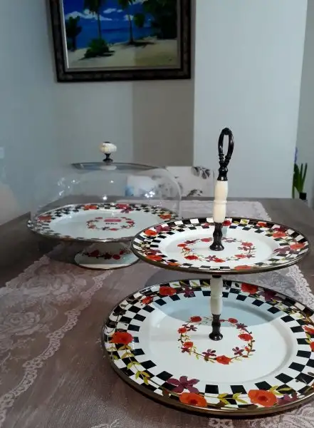 Hediyeme nasıl kıyıp da kullanacağım bilmiyorum ama aşık oldum vintage havalı bu katlı kurabiye tabağıma ve fanuslu pasta standıma ![]()