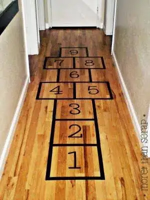Şuna benzer elektrik bantları ile koridora kareler yaptım. Ama hepsi düzdü bizimkinde.