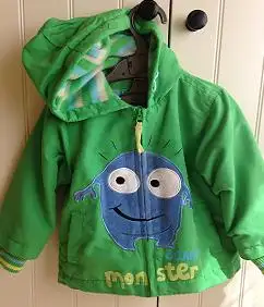 3-SMYK, Yeşil Mont İçi polar, kollar lastikli , üzerinde korkunç bir canavar var, 74 cm. yanlız montun isim adres yazılan etiketinde bizim bebişin adı ve adresi yazıyor:)
