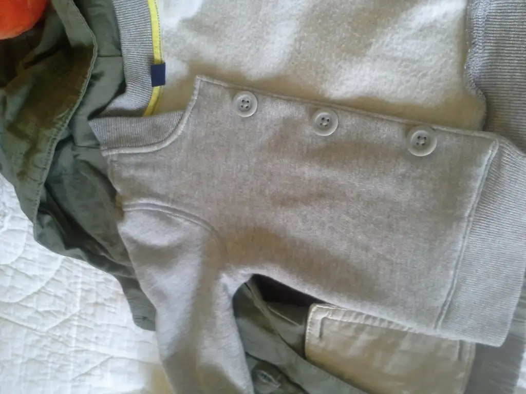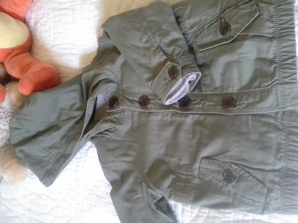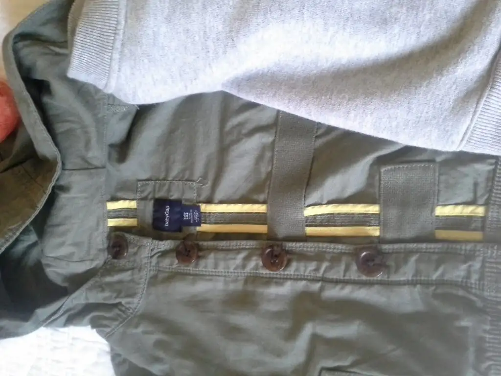 73.babyGAP 12-18 ay.haki trençkotun içinde gri pamuklu montu var birlikte ya da ayrı kullanılabilir, kapsonlu