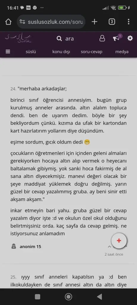 Birinci sınıf öğrencisi annesiyim. Bugün grup kurulmuş anneler arasında. Altın alalım topluca dendi. Ben de uyarım dedim. Böyle bir şey bekliyordum çünkü. Kızıma da ufak bir kartondan kart hazırlatırım yollarım diye düşündüm.