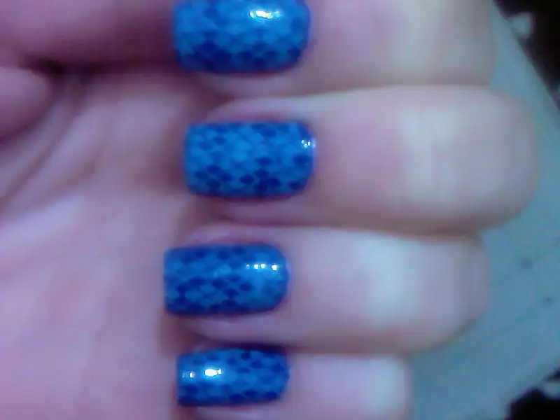 Yine benm yaptığım mavi franken ile Amonra'nın yaptığı bebek mavi frankenler kullanıldı...Dün yaptığım desenden sonra ocelerimi silip yenidne oce sürdüğümü sanıyorsanız aldanıyorsunuz...Zaten dün mavi frankeni tek kat sürdüğüm için bu gün dün yaptığım desen üzerine bir kat daha maviş sürdüm ve yeni deseni uyguladım...Ne yapayım üşengeçim ben