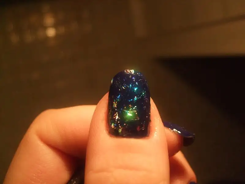 Bu şeffaf holografik pulların en önemli özelliği, üzerine sürüldüğü rengin alt tonlarını ve gelen ışığa göre kontrast tonlarını yansıtması; aynen bir kaleydoskop gibi, bu yüzden böyle tırnaklar yarattığımda onlara "kaleydoskop tırnaklar" diyorum. (Benden önce diyen oldu mu gerçekten bilmiyorum, oldu ise ne diyebilirim, aklın yolu birdir.)