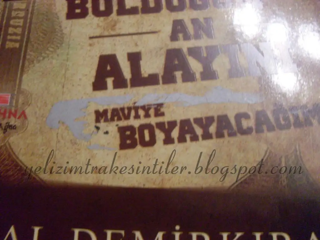 kitap jelatinli olarak çıkıyor karşınızda ve kitabı almadan tam ismini bilemiyorsunuz tabi sizler benim sayemde adını ögreneceksiniz:)) Fotoda görüldügü gibi kitabın adının en altında bulunan ''maviye boyayacagım'' yazan kısımı ancak kitabı alıp kazıdıktan sonra görebiliyorsunuzki bu kitabı gizemli hale getiriyor zaten :)))