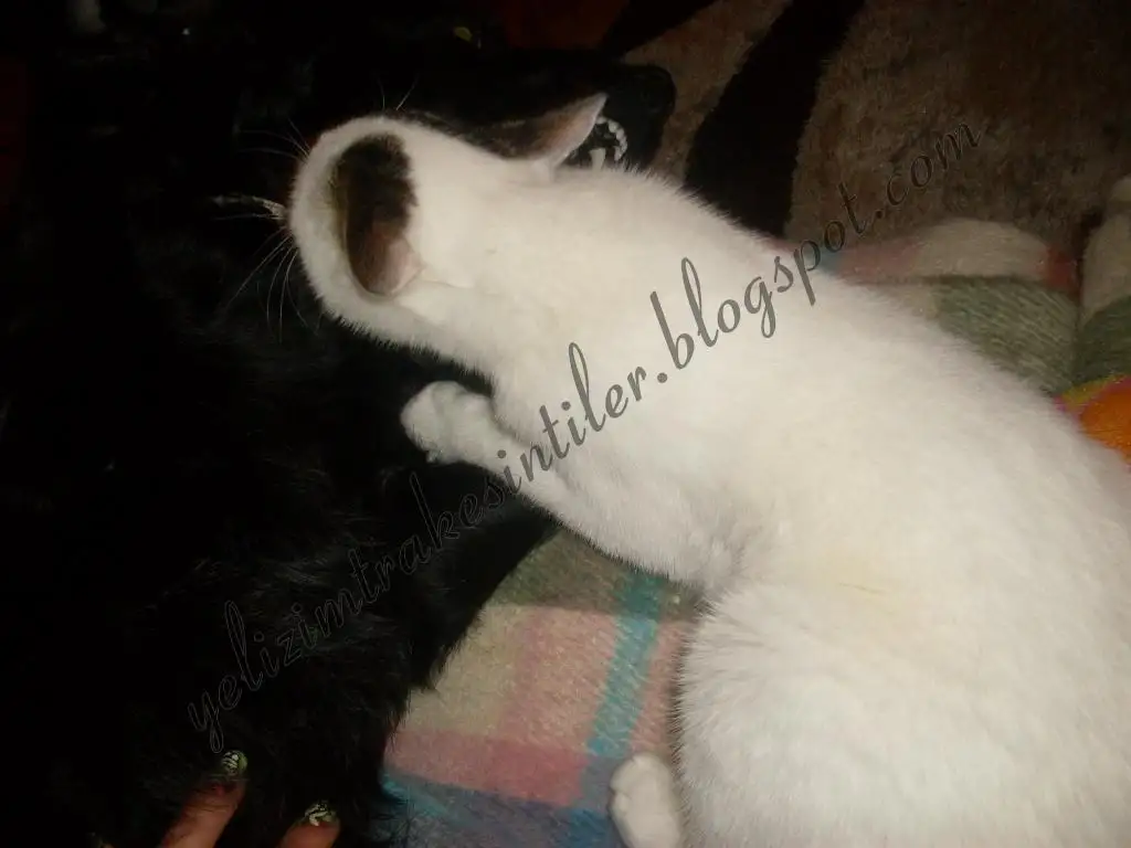 Ve son olarak kalemimi alıp kendine makyaj yapmaya çalışan takat tek tüysüz yeri burnu olduğu için sadece burnunu maviye boyayan pisicik :)) Sanırım kitaptan etkilendi pisicik okumayı biliyor olamaz dimi :))))) ve onu kıskanıp tepeme çıkan zeytin hanım :)) (en son fotoda siyah olan zeytinim:)))