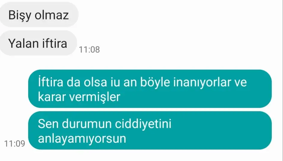Ve şimdi öğrendim ki aile evli olduğum kişi için öldürme kararı almış. Şok olduğum kadar inanılmaz bir korku duydum. Kendisinin de zarar görmesini istemem, sonuçta çocuklarımın babası. Ama benim asıl korkum çocuklarımdan. Babalarıyla gezmeyi çok severler, sık sık dışarı çıkarır. Ya çocuklarım yanındayken bir zarar verirlerse ya o bize evlat acısı çektirdi biz de ona çektireceğiz derlerse? Çok zor ve korkunç bir haldeyim. Ailemin bana zarar verdiğini biliyordum ama bu kadarı çok fazla. Ben neyin bedelini ödüyorum. Bundan sonra bu korkuyla mı yaşayacağım?