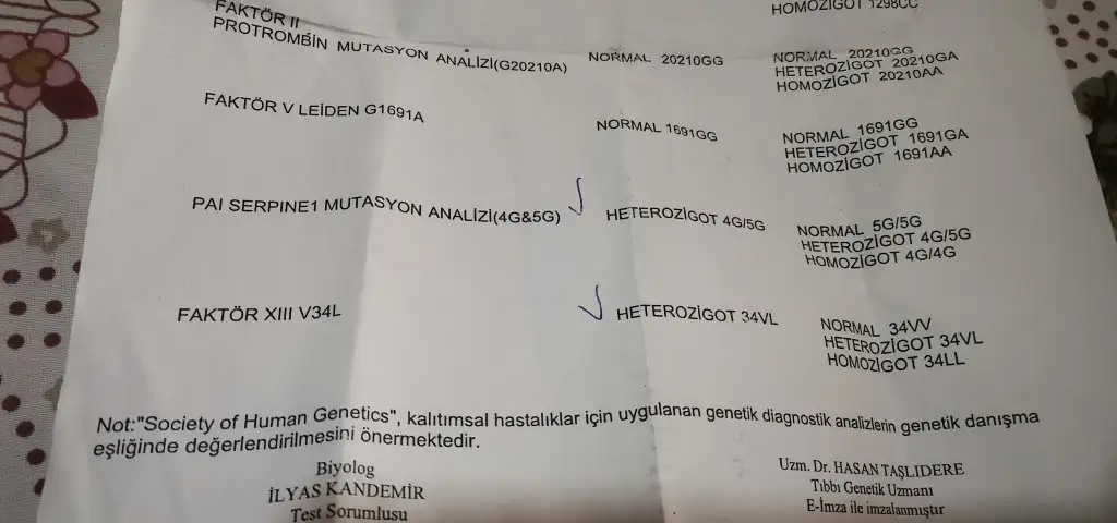 Benim bu sekildeBenim 2 değerim(beta fibrinogen ve faktör13 )heterozigot, 1 değerim de (MTHFR A1298C) homozigot çıktı bir de PAI 4G/4G Belki bundan dolayıdır hem aspirin hem iğne demesi.Zaten şuan daha yeni 1 ay oldu yeni bir hamilelik için 3 4 ay beklemem gerekecek sanırım.Allahım evladınızı sağlıkla kucağınıza almanızı nasip etsin inşallah,korkmayın dicem ama biliyorum ki korkuyla geçecek,daha sık takiple içiniz daha rahatlayacak insallah ❤