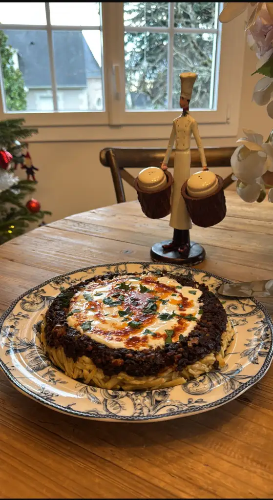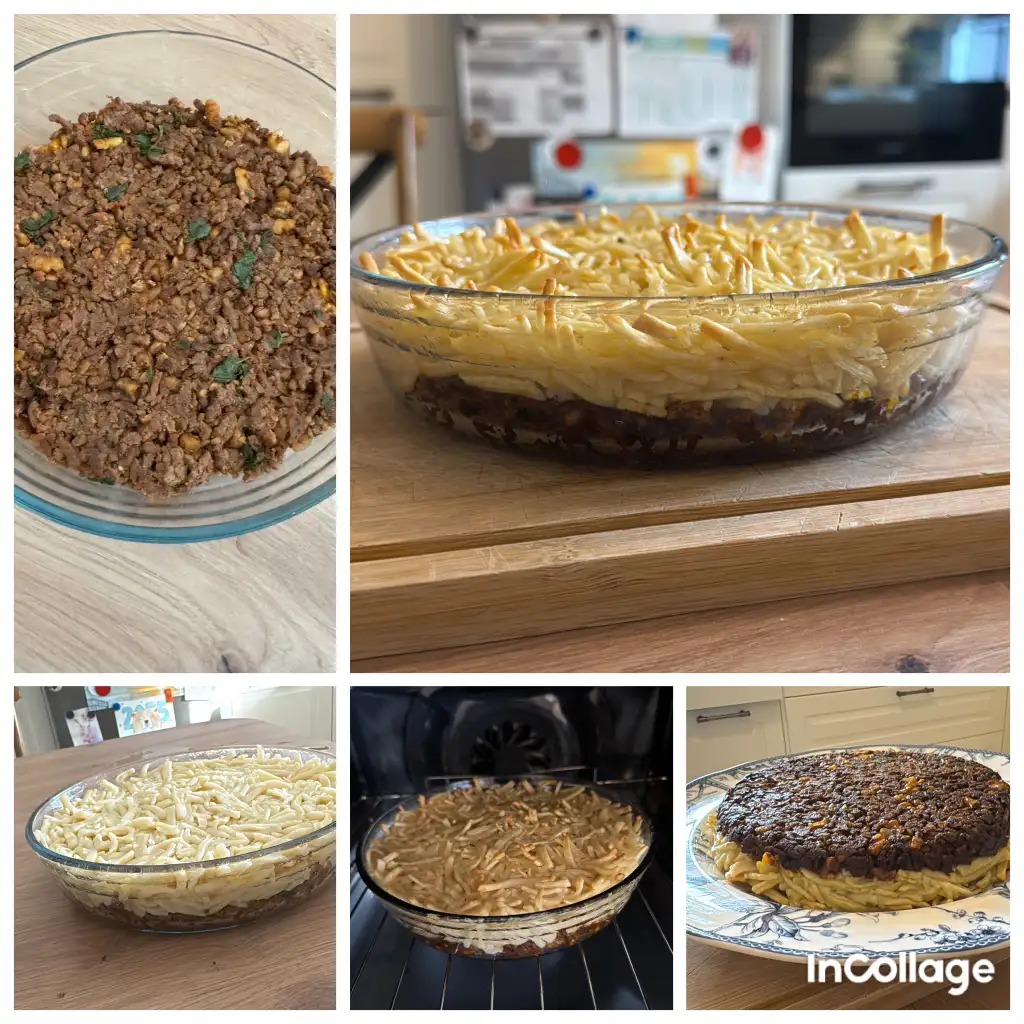 Ondan sonra erişteleri haşladım bol tuzlu suda. Dağılcak mı diye bekledim taş gibi açmışım. 😑 Borcamın dibini erittiğim tereyağı ile biraz yağladım. Üstüne önce kıymayı döküp bastırdım. Üstüne süzdüğüm haşlanmış erişteleri. Erişteleri de bi miktar tereyağ ile karıştırıp koydum unutmadan. Neyse sonra bunları 180 derece fırında 20 dakka kızarttım. Çıkarıp servis tabağına alıp ister düz yoğurt, ister sarımsaklıyla, üstüne tereyağında salçayı kavur coz diye dök. Süslemesi sana kalmış. Eki Görüntüle 3687506