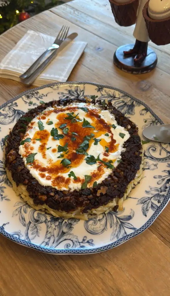Aslında erişteyi kesmeyle uğraşmasan kolay yemek. Acayip sevdik biz. Ceviz müthiş oluyor erişteyle, tavsiye ederim. Ha bu arada bu ne biçim yöresel konsept diyenler olacak, ben de isterdim bir Silifke yoğurdu, bir bakraçtır, ibriktir ama elimde yok. Yılbaşı konsepti yaptım artık idare edin. Öptüm.