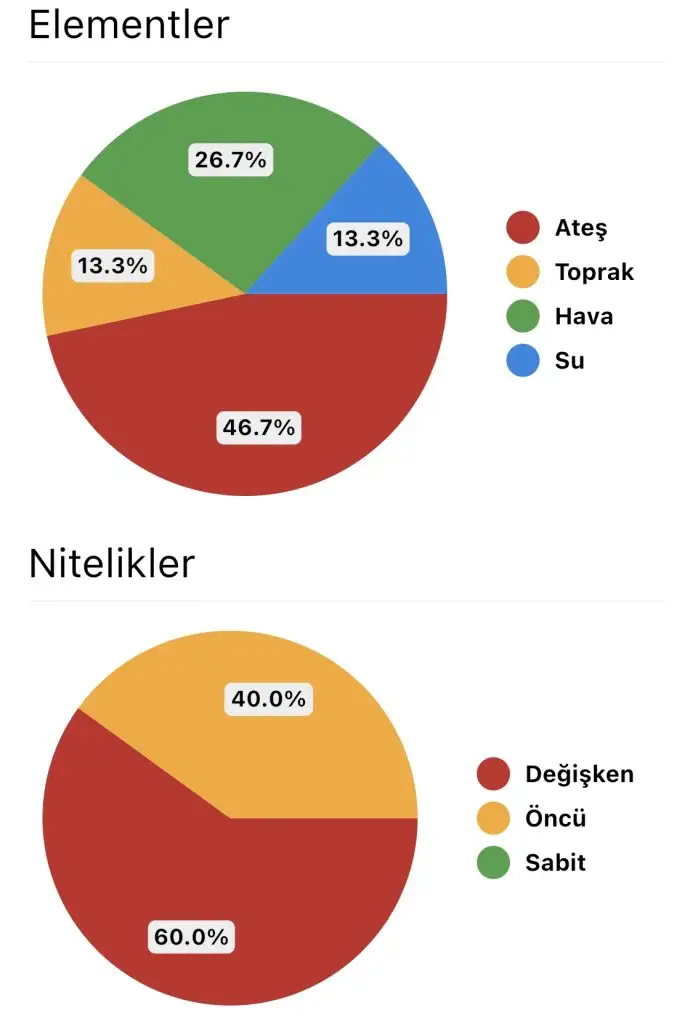 Aşırıoww ateş baskınbaya dengeli bir harita bence. Sosyal, özgüvenli, empatisi birazcık düşük, biraz da ben merkezci biri mi eşin?