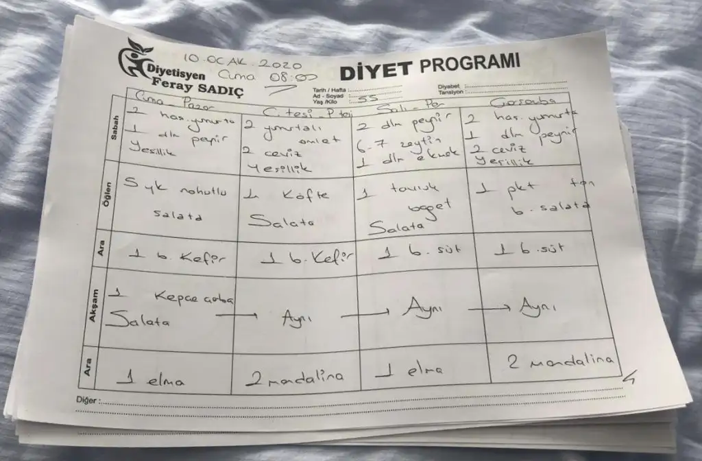 buna uymak biraz zor gibi. biraz daha genel bişey olsun ki hepimiz yapabilelim. mesela sabah omlet öglen et akşam sebze gibi bize de seçenek sunsun. birimiz kırmızı et yer birimiz beyaz et veya sebzelerde çeşitli olabilir. herkes evinde ne varsa veya hangisi kolayına geliyosa onu yapar o öğünde