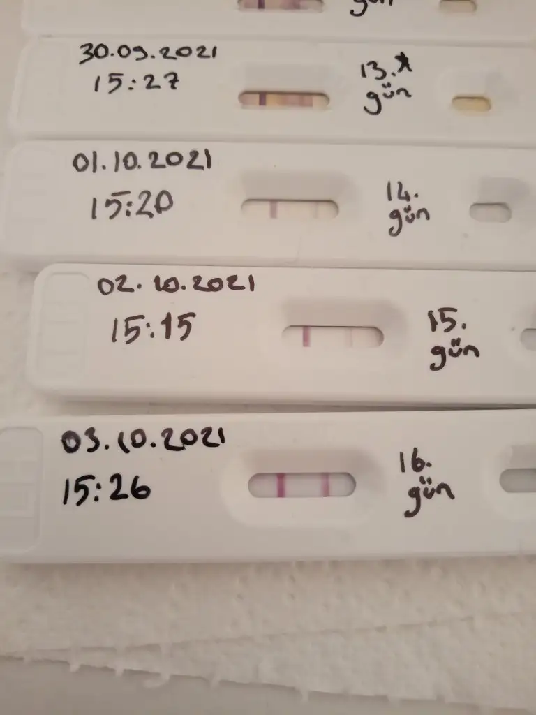 Evet dedigim gibi en koyu hali 16.gun oldu testler bekledikce koyulugunu kaybediyor resimdeki gibi16. Gun hemen koyulmastimi .. saatler geçtikçe koyu test bile siliniyor o an değerlendirilmesi lazim.. bakınca soluk görünüyor.