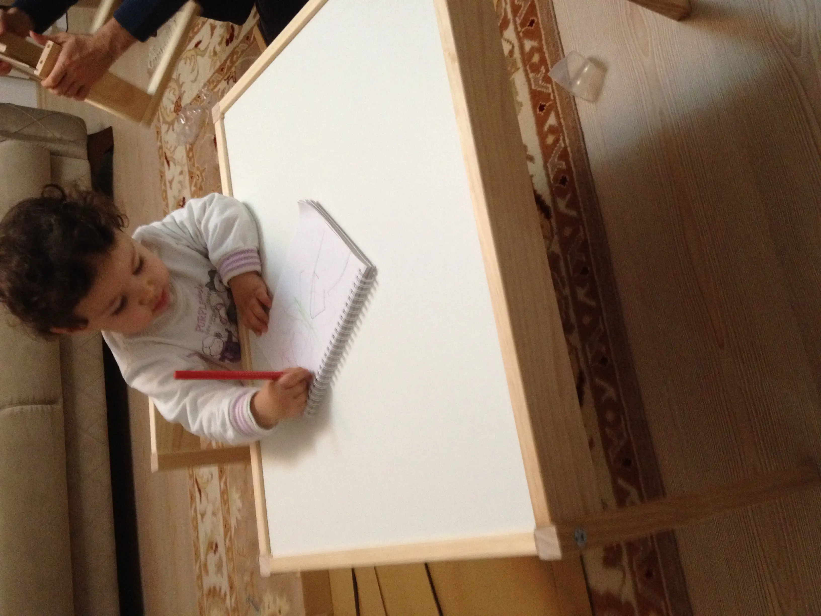 Destiny ve nfk masa sormuştu, emine 1,5 yaşındayken ikeanın düz masa ve sandalyesini almıştım. Sandalye de tehlikeli hareketler yaptığı için kaldırdım ama masa da gayet güzel aktiviteler yapıyoruz. Destiny eminenin odasında kitaplığımız var onun alt rafları tamamen ona ait. Düzenli bi şekilde oyuncakları ve kitapları var ama ben de raf şeklinde kitaplık yaptıracam okuma köşemize. Oda için düşündüklerin gayet ideal bence sade olması en güzeli fazla karışıklık çocukları yoruyor. Ben bi de parçalı yapbozlarını, meraklı minik kartlarını, hazırladığım aktiviteleri ayrı ayrı dosyaladım, hem ortalıkta karışıklık olmuyor hem de aradığımızı rahat rahat buluyoruz. Oyunumuz bitince de aynı şekilde kaldırıyoruz.