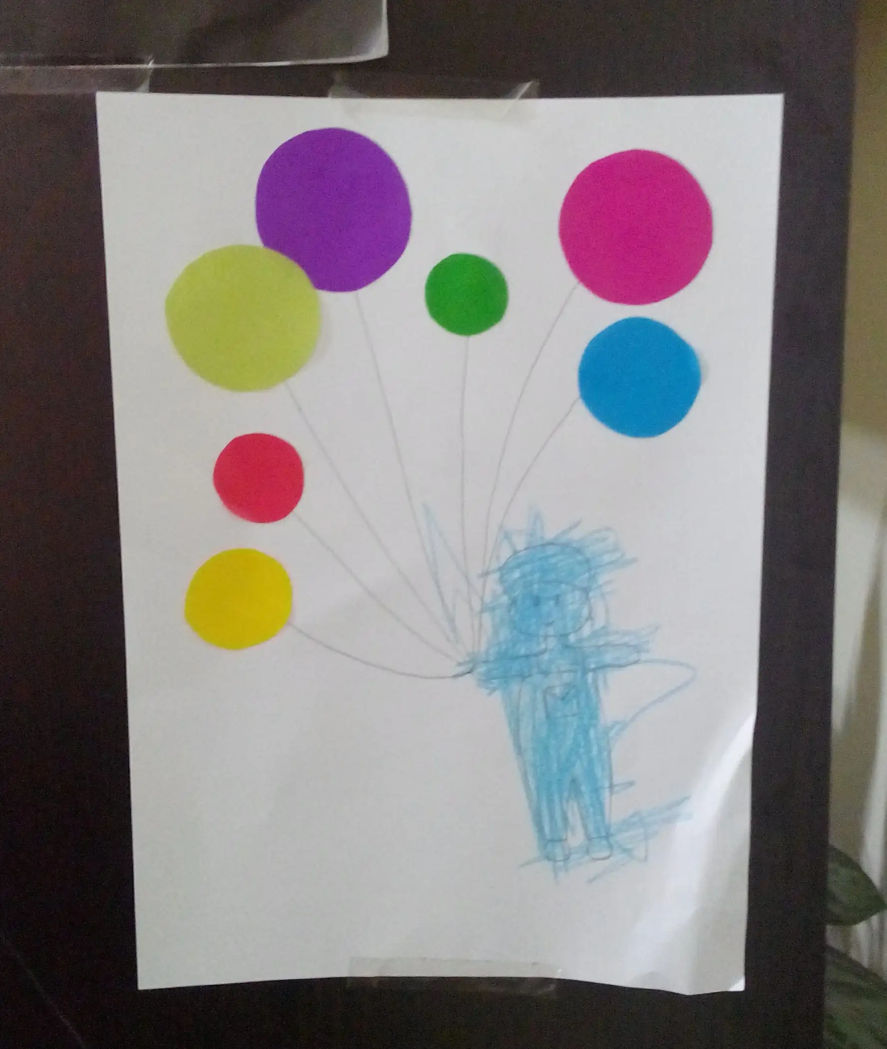 gece gündüz kavramı ve pepenin büyük küçük renkli balonları.