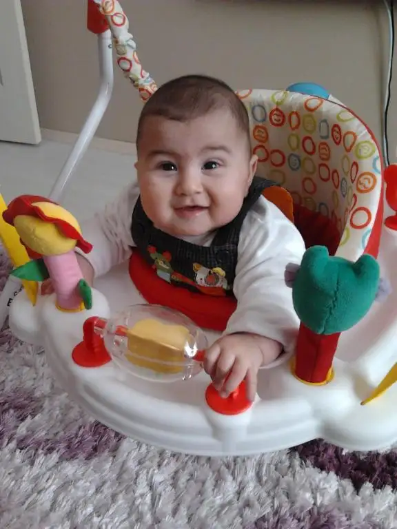 maşallah oğluşuna.. bizde de aynısından var sanki içine girince kocaman olmuş gibi duruyolar. çok heycanlanıyor benim kızımda içinde ayaklarını hızlı hızlı çırpıyor zıplamayı öğrendi artık içinde. ama ben en fazla 15 dakika tutuyorum. çok küçükler daha beli bacakları acıycakmış gibi geliyor. sen kadar kalmasına izin veriyorsun canım?