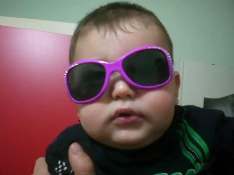 gözlükle havası artmış ama mor çerçeve ve ışıltılı taşlar azıcık karizmayı çizmiş