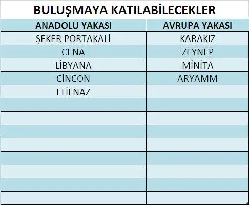 bence kimler buluşmaya gelme niyeti olduğunu söylesin..