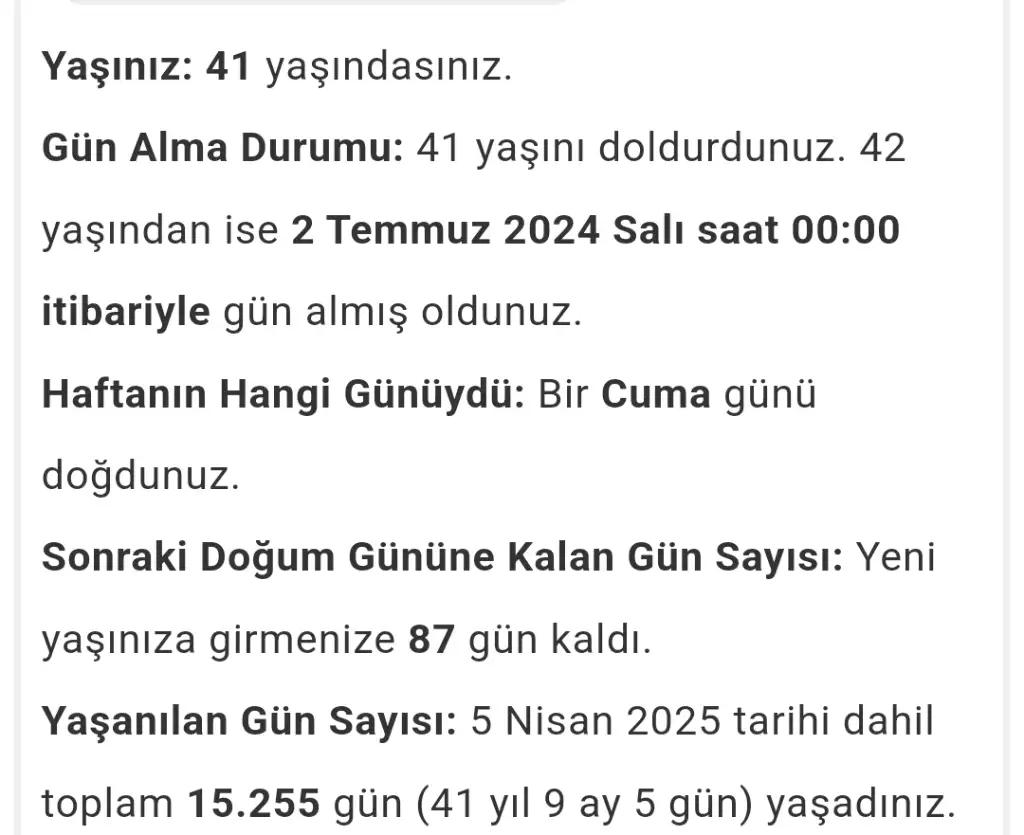 Profilimde de 41 yazıyor ama85 doğumluyum muhterem 40 ı doldurdum işte