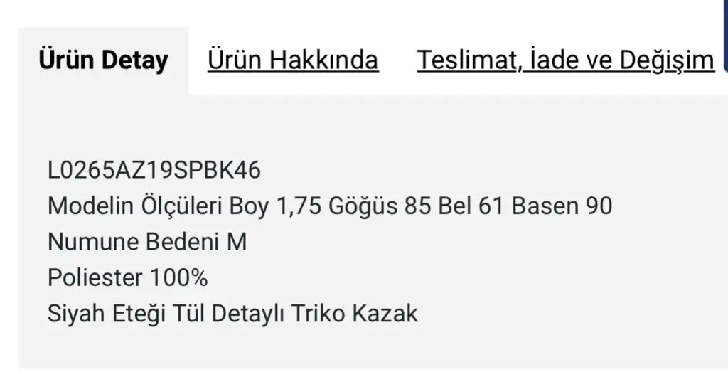 Aciklama ve gorseller bu sekilde olunca hakli olarak siparis verdigimde kazak gelecegini dusunmustum. Ancak elime gorsellerde asla tamami gorunmeyen kotu bir (atlet bile diyemem) ic giysi geldi elime... Eki Görüntüle 2248839