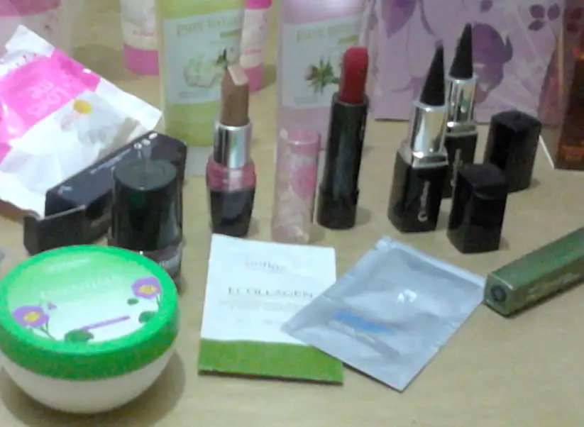 kızlar sürpriz paket sipariş etmiştim içinden çıkanlar şunlar;bir tane koyu mor oje,oriflame beauty colour attraction-golden dust ruj(benim rengim gelmiş şansıma :) ),essentials menekşe özlü yüz kremi,ecollagen kırışıklıklara karşı etkili 4 haftalık yoğun bakım tester ve North For Men Göz Çevresi için Üçlü Etkili Balm tester.