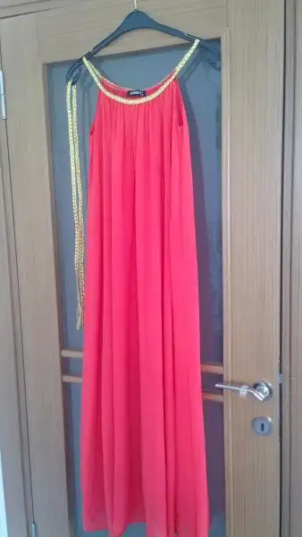Eki Görüntüle 1062696 nar çiçeği altın renk detaylı elbise M beden/bir kez giyildi. kuşağı göğüs altından (ki ben bu şekilde kullandım çok şık duruyor) istersenizde belden bağlayarak kullanabiliyorsunuz tril tril çok rahat 25 tl