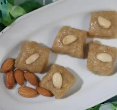 Çelik tencereye koyduğunuz toz şekeri 1 bardak su ile güzelce eritin, sonra kaynatın, koyu kıvam olana kadar devam edin, porselen bir tabağa damlatın, eğer top gibi düşüp dağılmıyorsa kıvamındadır. O zaman ocaktan alıp biraz ılıtın, nişastayı koyup mixer veya parçalayıcı ile bembeyaz olana kadar çırpın. İçine bademi ilave edip güzelce karıştırın, el değecek ısıda olduğunda elinizle yoğurun, istediğiniz şekli verip düz bir servis tabağına sıralayın.