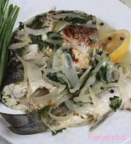 Teflon yayvan bir tencerede zeytinyağı ile soğanı koyup rengi pembeleşene kadar karıştırarak kavurun. Suyu, sirkeyi, tuzu, karabiberi ve defne yaprağını koyup güzelce karıştırın. Sonra balıkları sıralayın, ağzını kapatıp balıklar suyunu çekip zeytinyağı kalana kadar pişirin. Dağılmadan balıkları düz bir tabağa koyup üzerine kıyılmış maydanoz serpip servis yapın.