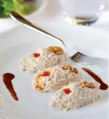 (Eskiden et makinesinde ceviz çekilir ve bu işlem birkaç kez tekrarlandığı için cevizin yağı bir kenara akardı. Burada biriken yağ da bu yemeğin üzerine dökülürdü.)