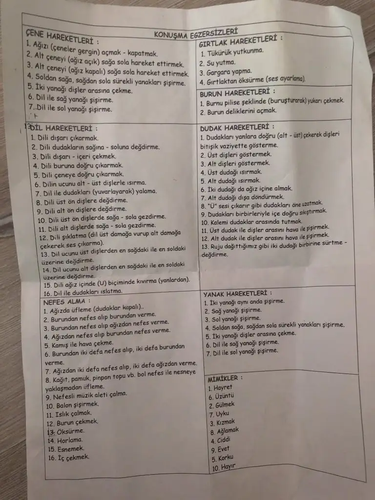 Bazen sadece oral motor kas zayıflığı oluyormuş. Bunun için ağız eğzersizleri veriyorlardı.