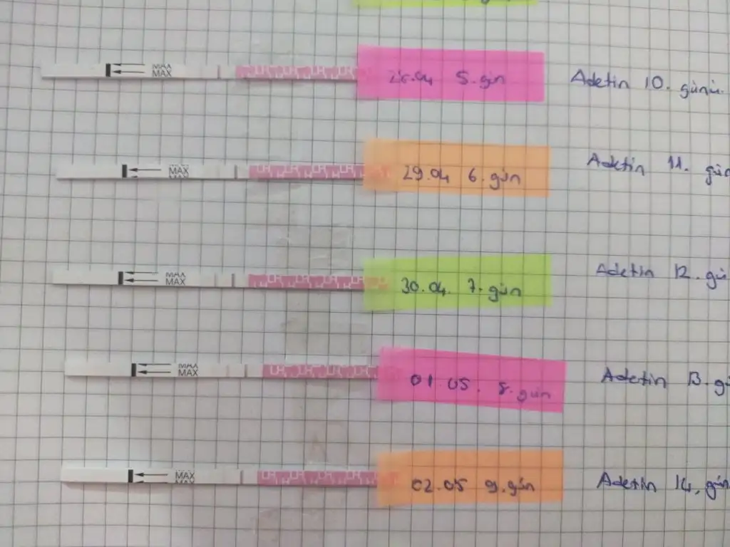 Ovulasyon testi kullananlara bir sorum olacak 3 gundur test yapıyorum adetimin 10. Gunu basladim ilk gün T çizgisi silikti 2. Gün biraz daha belirgin fakat bugün 3. Gün T çizgisi çok çok silik diğer günlere nazaran bir tik daha koyu olması gerekmiyor mu ? Daha önce yaptıklarımda hep öyle oluyordu çünkü sizce neden olabilir ? (Testi yapmadan 2 saat önce bisey içip yemedim) yardımcı olursanız çok sevinirim