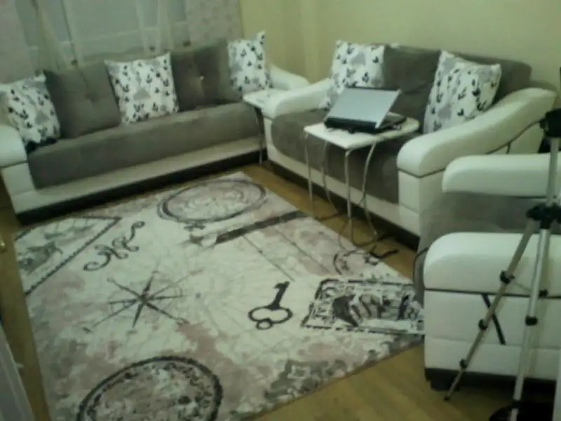 Koltuk kırlentleri çiçekli, yani hareketli.Bu yüzden halıyı daha düz ve sade tercih ederdim, belli belirsiz desenleri olan bir halı.
