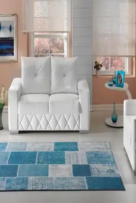 Şöyle anlatayım köşe koltuğun şeklinde ama koyu turkuazın renginde olacak.üstüne beyaz ve perdenin kumaşından kırlentler olacak.halı da bu. sizce boğar mı ? tv ünitem ve koltuk ayaklarım beyaz olacak