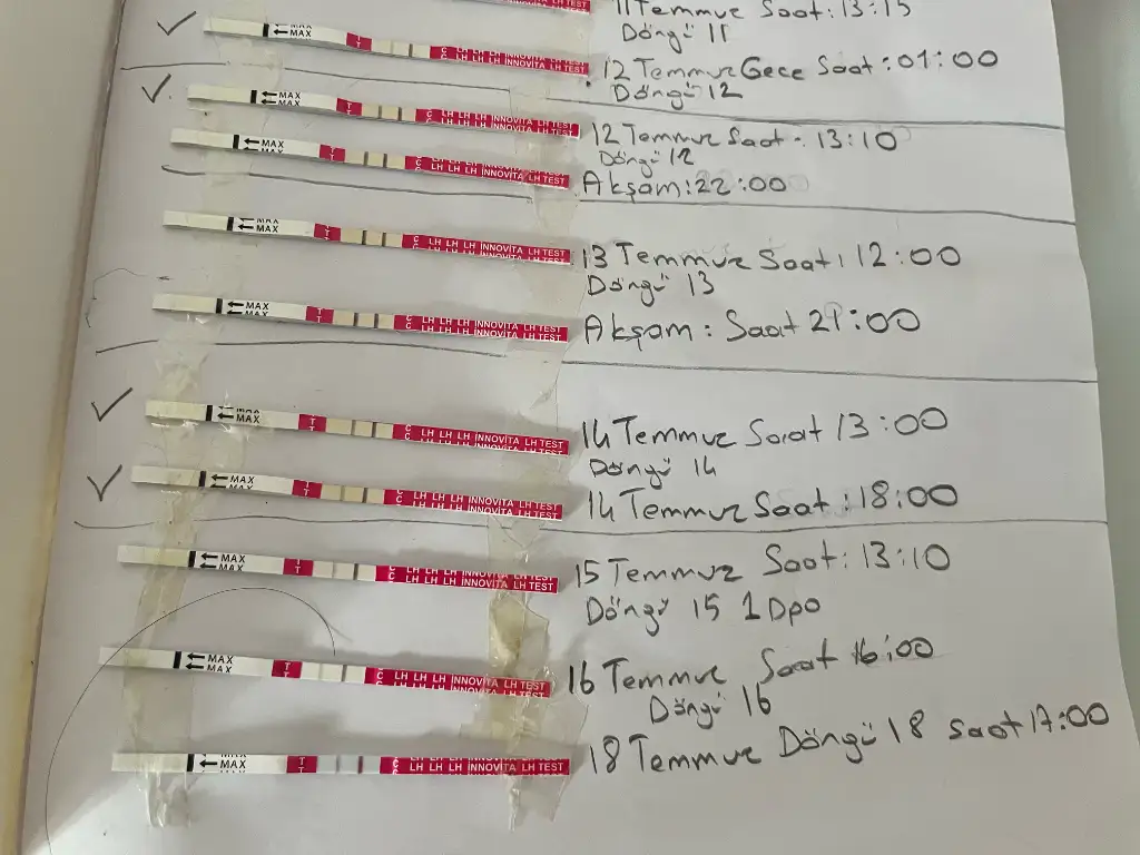 Kızlar ben daha önce kimyasal gebelikte lh testi alıp yapmıştım yanlışlıkla bilmeyerek çizgiler koyuydu kanda gebelik çıkmıştı şimdi yumurtlama 12 13 Temmuz çatlama 14 Temmuz bende bugün lh testi yaptım koyu çıktı imkan varmıdır