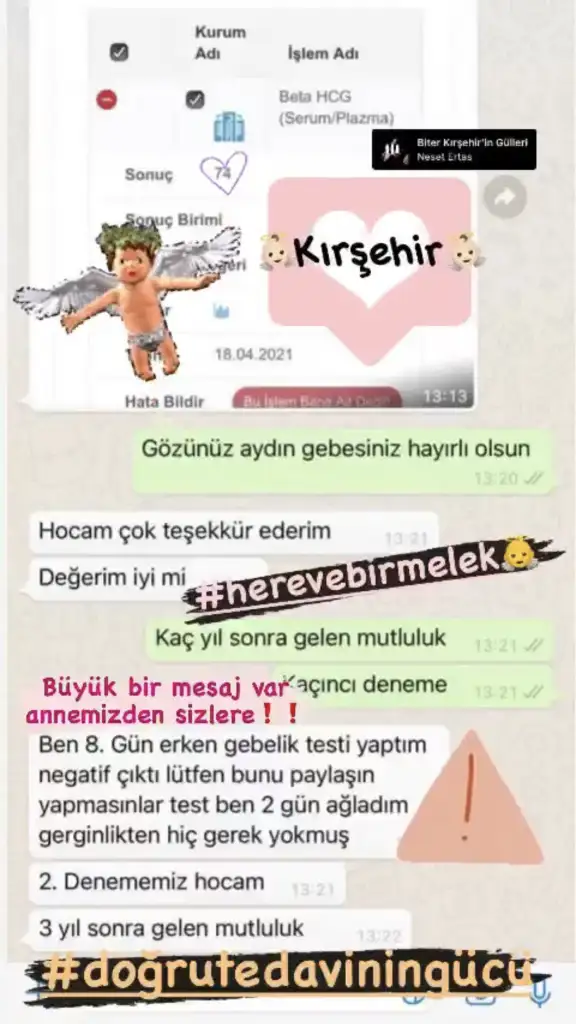 Canım beniiim ağlamaa Hiiiiç üzülme rabbim inşallah en hayırlılarını nasip edecek güzel haberlerini umutla bekliyorumkuzum çok teşekkür ederim ya, instada o hocayı ekledim videoları izledim (izlerken birsürü ağladım, pozitif haberlerini alanların ağlamasına ağladım) bununla alakalı birşeye denk gelirmiyim diye ama bulamamıştım, iyiki zahmet edip sen bulup gönderdin. Çok teşekkür ederim.