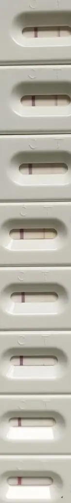 Bu sa toplu halde olan foto simdiye kasarki yaptiklarimdan. En üstteki igneden sonraki 1. Gün en alttakida igneden sonraki 8. Gün biraz önce yaptigim. Daha hepsinde ikinci cizgi görünüyor sonradan belirginlesiyor
