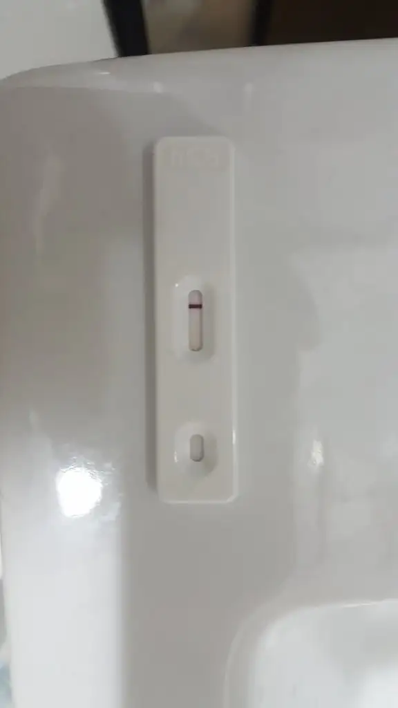 Igneden sonraki 10. Gün fotografta belli olmuyor ama elimdeyken daha hala görümüyor ikinci cizgi. Bitmemis daha igne etkisi.