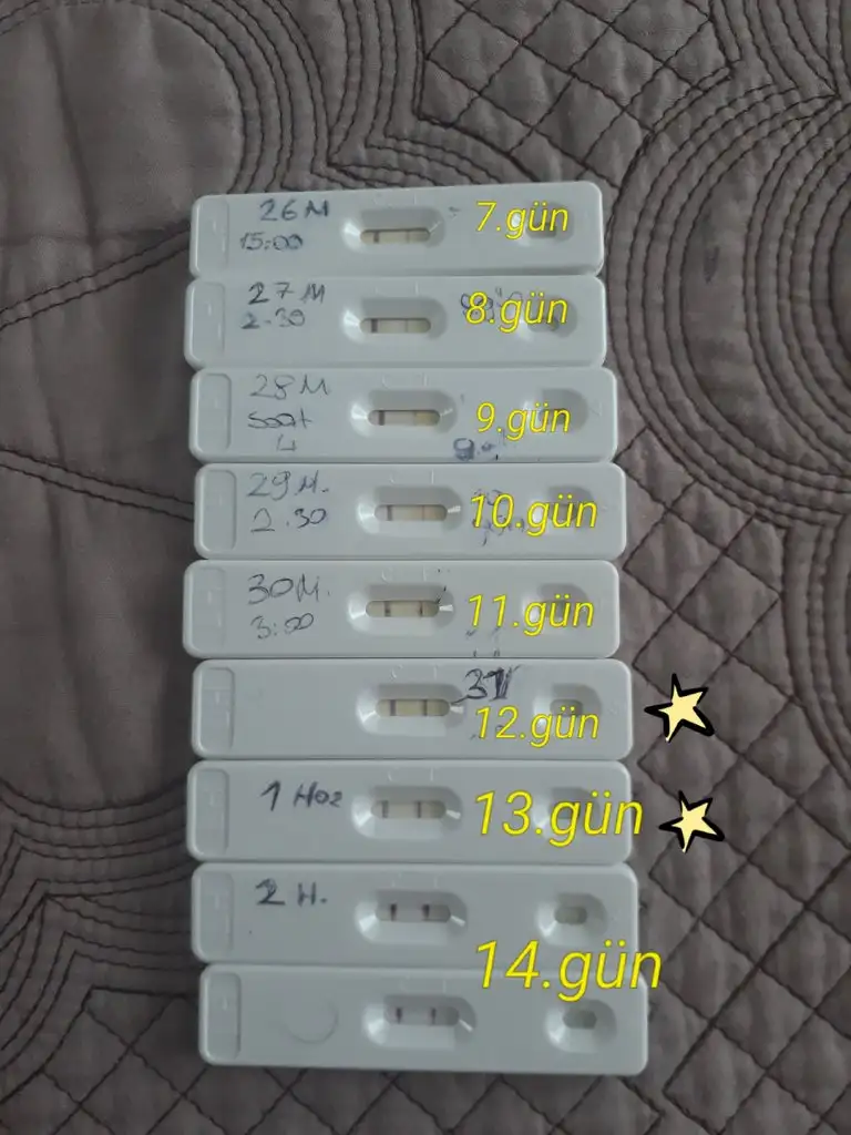 Yok canim endişe etme stres her seyi geciktirir stres yapma rahat ol.. iyice silik ciksa bile ertesi gun birden bire kopkoyu cikabilir bu herkeste degisir.. stres ned3n etkiler dersen beyindeki hipofiz bezinin sinyal göndermesi ile lh birden bire yukselir ve yumurtlama gerceklesir. Sen stres yapar cok kafaya takarsan beyin etkilendigi icin yumurtlama da gec olur dolayisi ile adet olsan bile adetin de gecikmis olur.. bir ay adetin gecikmesi ile vucut tamamen alt ust olur diger aylara da yansir. Bu yüzden test yaparken akisina bırakın illaki yumurtlama olacak. Bunu tum arkadaşlara soyluyorum stres yapmayin ki yumurtlamayi net gorelim hamileligi de en kisa zamanda Allah izin verirsr gerceklestirelim.. hic bir sey zor degil yeter ki azim ve sabir sakinlik olsun gerisi gelyor inaninEvet canım ama buay 6 gun surdu adetim yani kanamam yoktu ama lekelenme seklinde oyuzden uzun surdu 8.gunu degerlendırdık zaten ama cok ılgınc gittikce sılıklesıyor.. Tesekkur ederım vallahi hergun kahrımı cekıyosun canım Allah razı olsun![]()